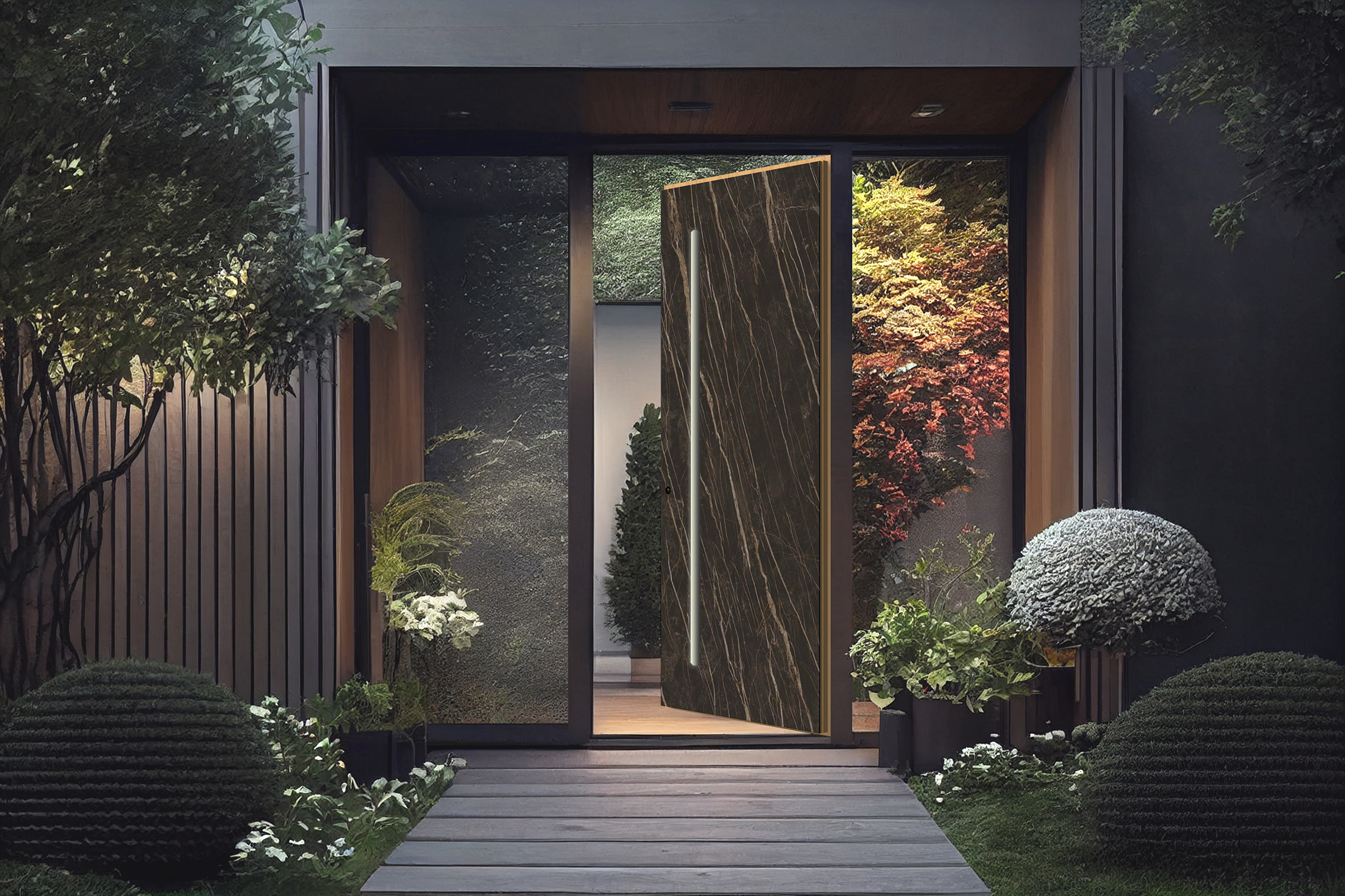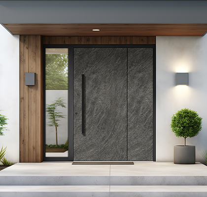 Cenimo delo človeških rok, ki izhaja iz strasti in tradicije več generacij. Naša najnovejša kolekcija vhodnih vrat Les & kamen ponuja edinstveno kombinacijo visokokakovostnih materialov, kot so les, stari les, keramika, kamen, laminat in črno emajlirano steklo, ki vaša vhodna vrata spremenijo v elegantna umetniška dela.