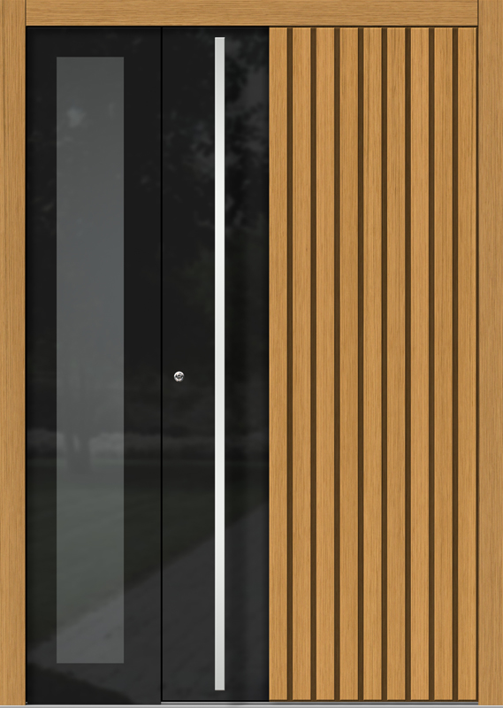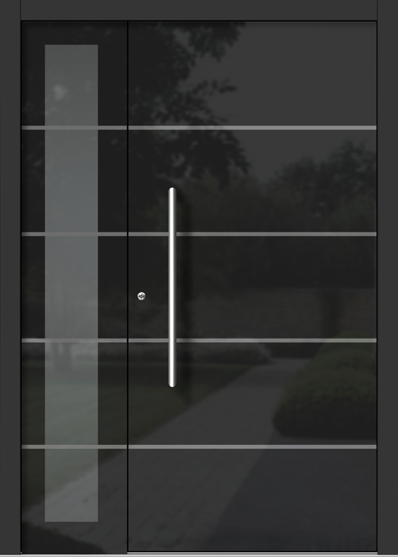 Naša kolekcija s površino poravnanimi emajliranimi stekli je namenjena vsem, ki si pri svojih vhodnih vratih želijo svojstven, umetniški stil. Emajlirano steklo črne barve obogati vsak model vhodnih vrat s skoraj tridimenzionalnim učinkom.
